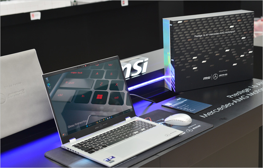 제품 패키지에는 MSI와 Mercedes-AMG 공동 브랜딩이 적용된 게이밍 마우스, 마우스패드, 케이블 타이, 슬리브 백, 포스트 카드 등 프리미엄 액세서리 세트가 포함되어 소장 가치를 더욱 높였다.