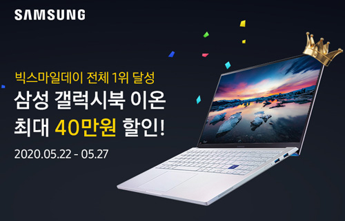유니씨앤씨는 삼성 갤럭시북 이온 NT950XCR-G58A 모델을 대상으로 최대 40만원 추가 할인 및 푸짐한 사은품이 증정되는 ‘빅스마일데이 특가’ 이벤트를 진행한다.