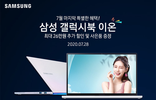 이번 행사는 9% 선택할인과 5% 중복할인 쿠폰, 5% 카드할인, 장바구니 2만원 할인으로 최대 26만원 할인 혜택이 제공되며, 최대 22개월 무이자 할부가 진행되어 삼성 갤럭시북 인기모델을 부담 없는 가격에 구입이 가능하다. 또한 삼성 혜택APP을 통하여 대성마이맥의 고3·N수 수능패키지, 시원스쿨의 기초 영어회화 / 어린이 영어, 다락원의 TOEIC / OIPc / 중국어 / 일본어 어학과정, IT/자격증 강의 등 연간 총 1,020만원 상당의 삼성 에듀 온라인 강의 콘텐츠를 1년 동안 무료로 수강이 가능하며, 갤럭시 버즈 플러스 할인권, 액세서리 할인 혜택 등이 추가 제공된다. 그리고 포토리뷰 작성 시 노트북 백팩, 블루투스 이어폰, 한컴 오피스 등 다양한 사은품을 택일하여 받을 수 있다.
