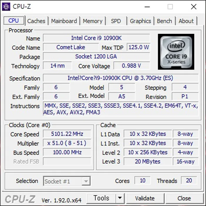 10세대 인텔코어 프로세서 i9-10900K는 8코어 16스레드를 지원하는 9세대 인텔코어 i9-9900K 와 달리 익스트림 프로세서와 흡사한 10코어 20스레드 지원으로 한차원 높은 성능을 경험할 수 있다. 특히 4GHz 대의 일반 프로세서와 달리 최대 동작속도가 5.3GHz 로 더 빠른 속도를 즐길 수 있다.