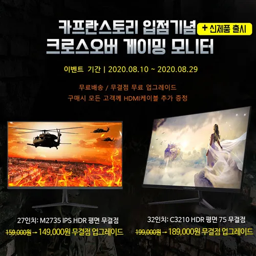 크로스오버 C3210 HDR 평면 75 무결점 이벤트는 (reurl.kr/32997117IZ), 크로스오버 M2735 IPS HDR 평면 무결점 이벤트는 (reurl.kr/32997118TT)을 참조하기 바란다.