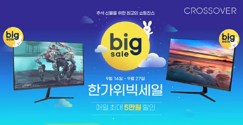 크로스오버는 포터블, 게이밍, 고해상도 모니터들을 대상으로 이베이 한가위 빅세일 특가전을 펼친다. 이번 행사동안 크로스오버의 포터블, 24, 27, 32, 34, 38, 43형 등 다양한 모니터들이 저렴하게 판매된다.