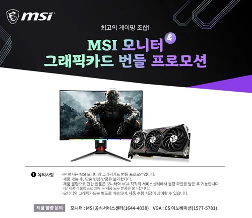 재고 소진 시까지 진행되는 이번 행사에서는, 행사 대상 MSI 게이밍 모니터와 그래픽카드를 함께 구매 가능한 프로모션을 진행, 고성능 그래픽카드 지포스 RTX 30 시리즈와 어울리는 고해상도 게이밍 모니터를 구매하고자 했던 소비자는 더 좋은 조건으로 구매가 가능할 예정이다.