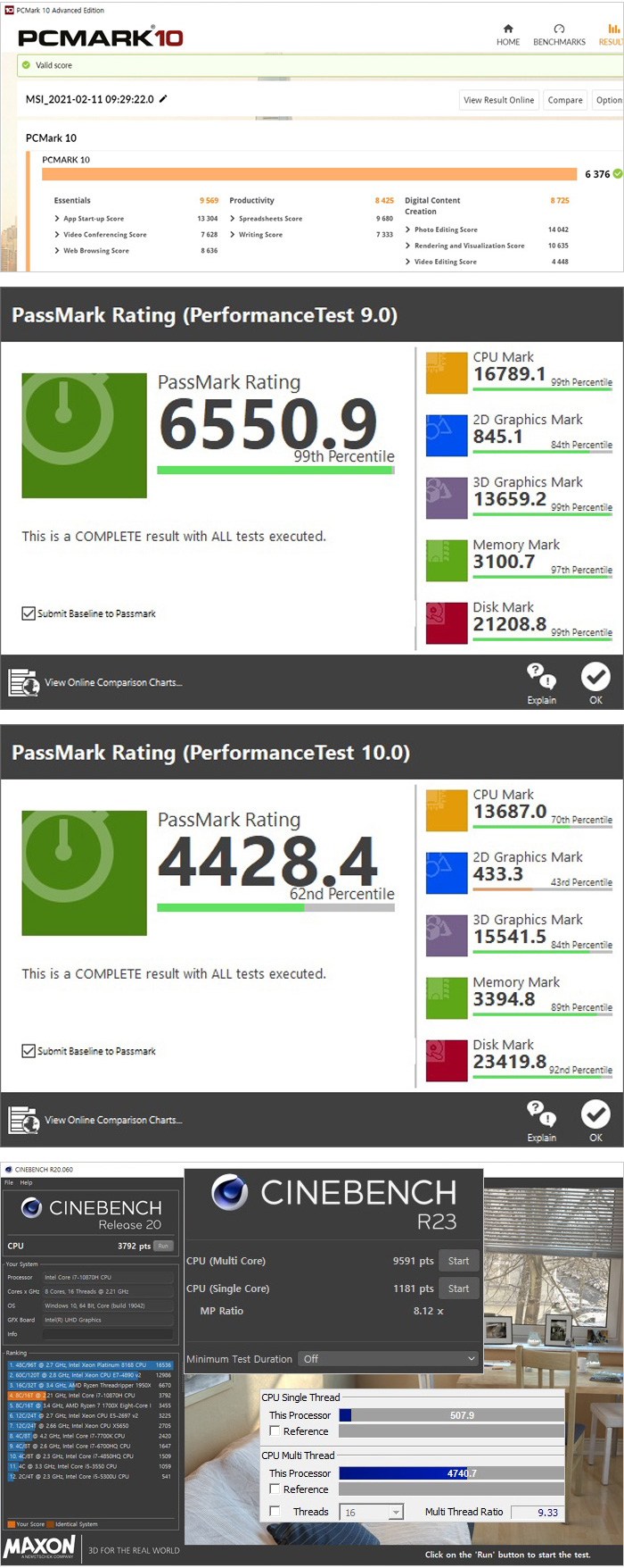 벤치마크 프로그램을 이용해 성능 테스트를 진행하고 있는 모습으로 게이밍은 물론 전문가용 S/W를 구동하는 용도로도 충분히 활용할 수 있는 높은 스코어를 보여주었다. 특히 보급형 게이밍 노트북과는 분명한 차이를 보여주었다.
