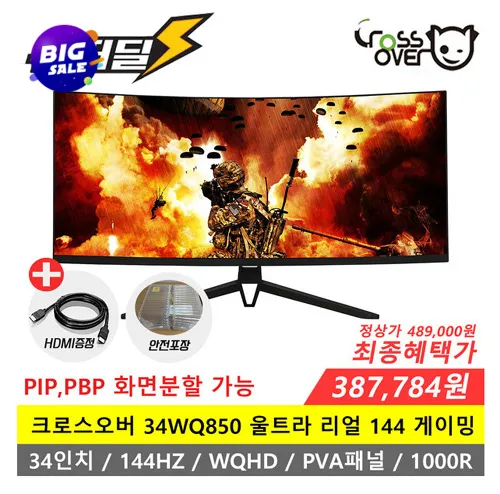 크로스오버존이 34형 고해상도 144Hz 게이밍 모니터 ‘34WQ850 울트라리얼 144 게이밍 HDR 1000R 커브드’를 대상으로 디지털 빅세일 지마켓 슈퍼딜 행사를 진행한다.