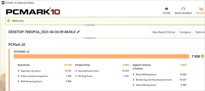 3DMARK를 이용해 3D 퍼포먼스를 확인하고 있는 모습으로 그래픽 스코어는 11세대 i7 프로세서 탑재 PC와 대동소이 한 것을 확인할 수 있었다. 물론 피직스와 CPU 스코어는 떨어져 최종 스코어에서는 차이가 있지만 고성능 그래픽카드 장착시 CPU로 인한 성능저하 없이 게임을 즐길 수 있을 것이다.