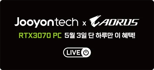 주연테크는 기가바이트 테크놀로지(GIGABYTE Technology Co., Ltd.)와 함께 오는 5월 3일 오후 3시부터 4시까지 네이버쇼핑라이브를 통해 RTX3070 그래픽카드가 탑재된 게이밍 데스크탑을 특가 할인 판매한다.