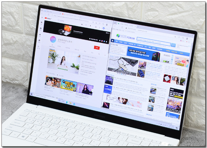 15.6형 대화면에 FHD 해상도를 지원해 두 개의 창 정도는 여유롭게 띄어두고 사용할 수 있다. 멀티테스킹이 많은 직장인이나 대학생이 불편없이 사용할 수 있을 것이다. (QLED 대비 폰트가독성이 떨어지긴 하지만 불편할 정도는 아니었다.)