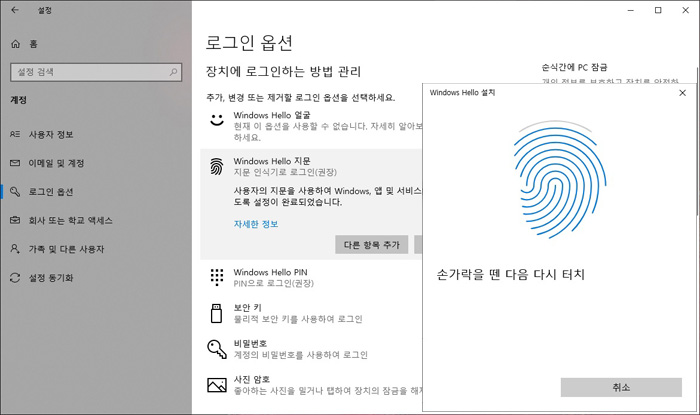 전원 버튼에 지문인식 센서를 탑재해 높은 보안성과 편의성을 구현했다. 윈도우 헬로에 비밀번호와 지문을 등록한 후 간편하게 로그인을 실행할 수 있다. (동영상을 통해 자세히 확인하기 바란다.)