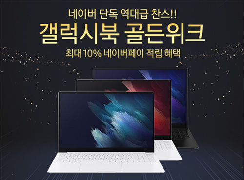 유니씨앤씨는 가정의 달인 5월을 맞이하여 AMOLED 디스플레이와 초슬림 초경량 디자인으로 뛰어난 휴대성을 자랑하는 삼성 갤럭시북 프로, 프로360 신제품을 대상으로 최대 34만원 할인 혜택 및 푸짐한 사은품이 증정되는 ‘갤럭시북 골든위크’ 기획전을 2021년 5월 18일부터 5월 25일까지 네이버 스마트스토어를 통하여 단독 진행한다.
