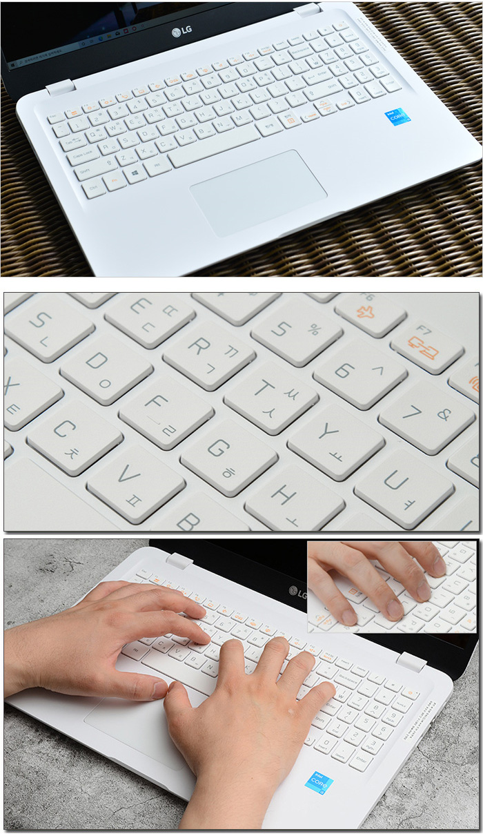 15.6형 대화면 디스플레이가 탑재된 노트북 답게 텐키가 포함된 풀사이즈 키보드를 제공한다. 넓은 팜래스트가 손을 완전히 받쳐주며 낮은 키압으로 부드러운 눌림이 가능해 오피스 용도로도 무난하게 사용할 수 있다. 특히 피드백이 명확하지 않아 일일이 눈으로 보며 확인해야 하는 일부 노트북과 깊은 눌림으로 화면만 보며 오타없이 고속 타이핑을 할 수 있었다.