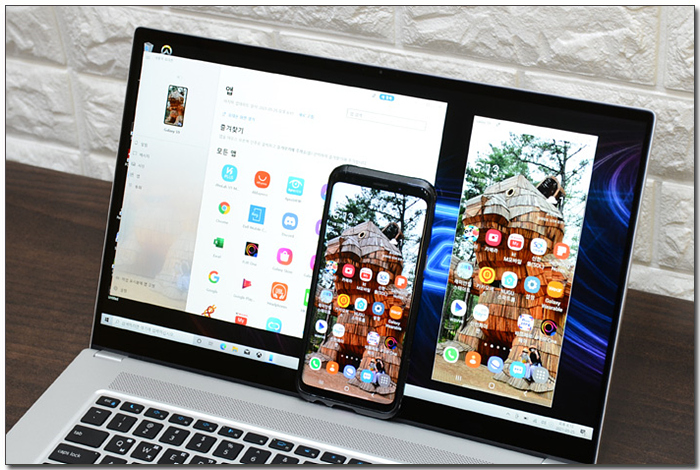 윈도우10 에서 기본 지원하는 사용자 휴대폰 앱을 사용하면 사진과 같이 스마트폰을 노트북에서 컨트롤 할 수 있다. 스마트폰 화면 미러링은 물론 저장된 메시지만 사진 등을 확인할 수 있으며 통화 기능도 제공한다. 상단의 사진은 테스트를 진행하고 있는 모습으로 원할하게 작동하는 것을 확인할 수 있었다.