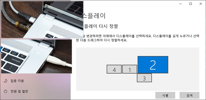 양 측면에 설치된 썬더볼트 4 단자가 디스플레이 출력을 지원해 3개의 모니터를 추가할 수 있다. 상단의 사진은 멀티 디스플레이 테스트를 진행하고 있는 모습으로 원할하게 작동했다. 특히 4K 모니터를 연결 했음에도 정상적으로 작동하는 것을 확인할 수 있었다.