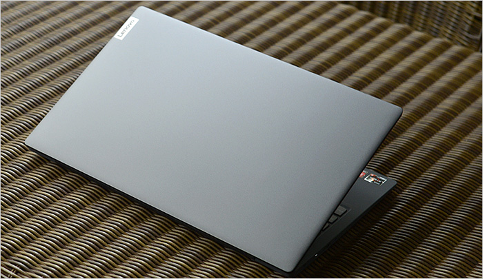 기기의 디자인은 기존 아이디어 패드 시리즈와 같이 무척 깔끔한 것을 확인할 수 있다. 그라파이트 그레이 컬러를 적용하고 보급형 노트북과는 확연히 비교되는 높은 마감완성도로 고급스러운 느낌을 살렸다. 특히 상판은 지문이나 먼지가 잘 묻어나지 않아 깔끔하게 노트북을 사용할 수 있다.