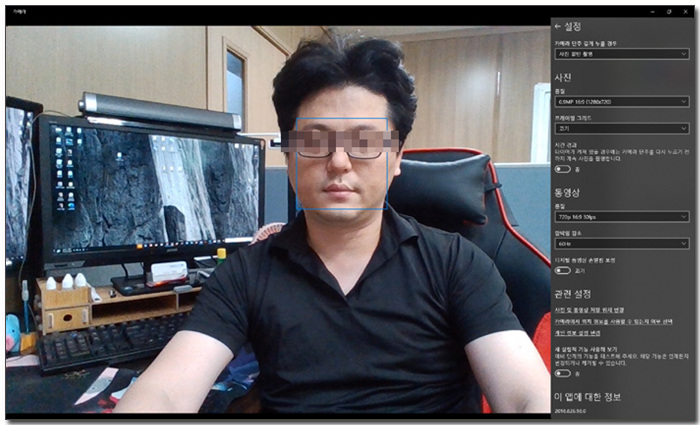 HD 웹캠의 화질을 확인하고 있는 모습으로 경쟁 모델을 압도하는 화질을 보여주었다. 밝기와 선명도 최고 수준으로 화상회의나 셀프촬영 등의 용도로 유용하게 활용할 수 있을 것이다. (최근 테스트한 노트북중 가장 만족스러운 화질을 보여주었다.)