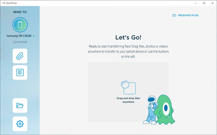 손쉽게 파일을 전송할 수 있도록 HP QuickDrop S/W를 지원한다. (프로그램은 MS 스토어에서 설치하면 된다.) QR 코드를 통해 손쉽게 스마트폰과 연결할 수 있으며 (스마트폰 에도 QuickDrop 앱이 설치되어 있어야 한다.) 사진이나 동영상 등을 손쉽게 전송할 있다. (동영상을 자세히 확인하기 바란다.)