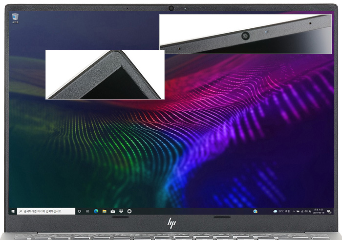 슬림 베젤을 적용해 제품 크기를 줄이면서 높은 몰입감을 경험할 수 있으며 상단에는 디지털 마이크와 HP 웹캠이 설치되어 화상회의나 채팅, 동영상 레코딩 등의 용도로 활용할 수 있다.