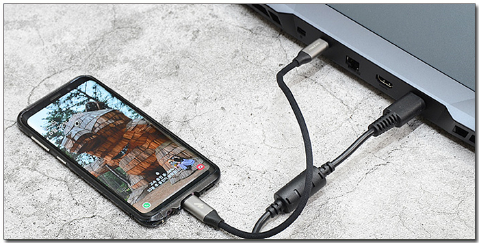 썬더볼트 4 단자는 상시전원을 지원해 (단, 노트북 전원이 연결되어 있어야 한다.) 노트북이 꺼진 상태에서도 스마트폰 충전이 가능하다.