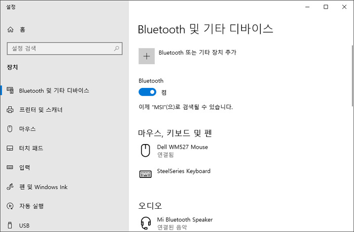 블루투스를 지원해 다양한 액세서리를 활용할 수 있다. 상단의 사진은 스피커와 마우스의 연결 모습으로 원할하게 페어링 되는 것을 확인할 수 있었으며 원할하게 작동되었다.