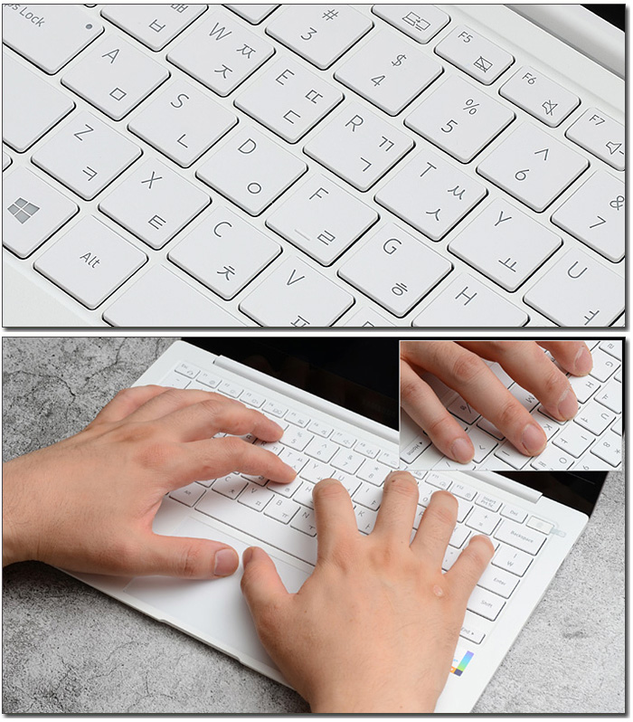 키보드는 확연한 구분감을 제공해 타이핑이 많은 대학생이나 직장인들이 불편없이 사용할 수 있다. 특히 키의 크기를 키우고 고무 돔으로 키가 움직이는 거리를 1mm로 줄여 타자 속도와 정숙성을 높인 프로 키보드 탑재로 회사나 강의실 등에서 편하게 타이핑 할 수 있다.