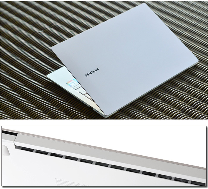 기기 후면부의 모습으로 고성능 슬림 노트북 답게 통풍구가 설치된 것을 확인할 수 있다.