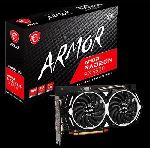 MSI는 AMD의 RDNA2 아키텍처 기반의 ‘라데온 RX 6600’을 탑재하고, MSI의 최고 쿨링 기술을 장착한 'MSI 라데온 RX 6600 아머 V1 8GB'와 ‘MSI 라데온 RX 6600 아머 8GB’를 출시했다.