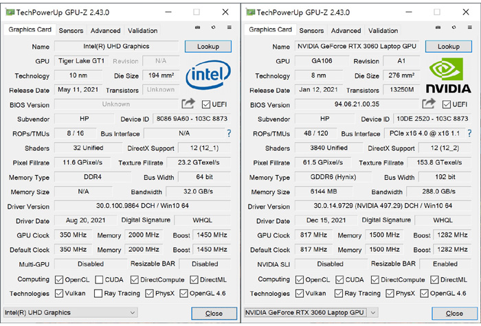 또한 30N01AV 모델은 3D 등의 크리에이터 작업에 최적화된 쿼드로 RTX A2000 그래픽이 지원되어 범용성이 강조된 46N47AV 모델과 달리 좀더 전문적인 작업 용도로 활용할 수 있다. 이 제품은 120Hz 주사율에 10억가지 컬러로 생동감 있는 영상을 재생하는 HP 드림컬러 기술이 적용되어 선명한 영상을 즐길 수 있으며 일반 노트북을 압도하는 4K 해상도에 600nits 의 높은 밝기와 안티글레어 타입 지원으로 자연광이 비추는 야외에서도 편하게 작업을 할 수 있다.