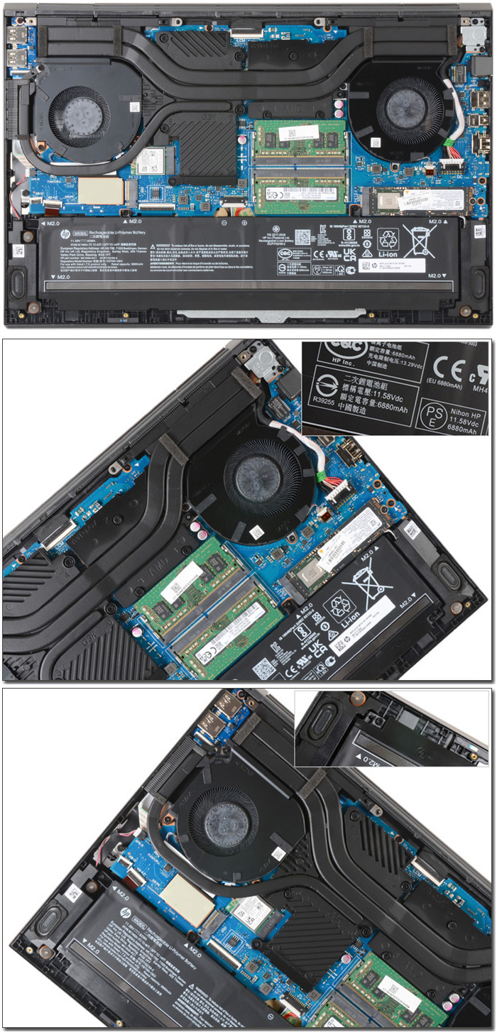 다양한 게임을 설치할 수 있도록 512GB NVMe M.2 SSD가 장착되어 있고 손쉽게 저장장치를 추가할 수 있도록 여분의 M.2 슬롯을 추가로 제공한다. 뿐만 아니라 Wi-Fi 6 무선랜카드와 6880mAh 용량의 리튬이온 배터리가 장착된 것도 확인할 수 있다.