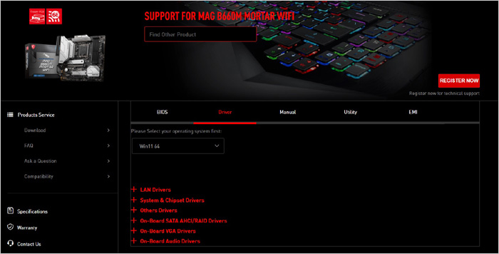 PC를 조립하고 바이오스에 진입한 모습으로 정상적으로 CPU와 메모리가 인식되는 것을 확인할 수 있었다. 또한 12세대 인텔코어 프로세서에 최적화된 윈도우 11을 설치한 후 MSI 홈페이지를 방문해 최신 드라이버로 업데이트를 진행했다.