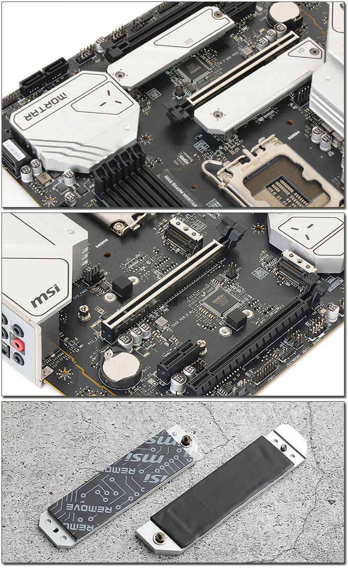 30만원 중반대에 판매되고 있는 Z690 칩셋 기반의 토마호크와 디자인을 비교한 모습으로 ATX 와 micro-ATX 모델답게 슬롯 차이가 확연한 것을 확인할 수 있다. (5개의 M.2 슬롯과 3개의 PCIe x16 슬롯을 지원하는 토마호크와 달리 2개의 M.2 슬롯과 2개의 PCIe x16 슬롯을 제공한다.)