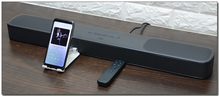 이 제품은 일반 사운드바와 달리 평범한 스테레오 기반의 사운드를 실감나는 3D 사운드로 업그레이드 해 주는 제품으로 JBL의 멀티빔 기술을 지원해 실제 콘서트장에 있는듯한 공간감을 경험할 수 있으며 HDMI eARC를 통해 가상 돌비 애트모스의 고음질 오디오를 즐길 수 있다.