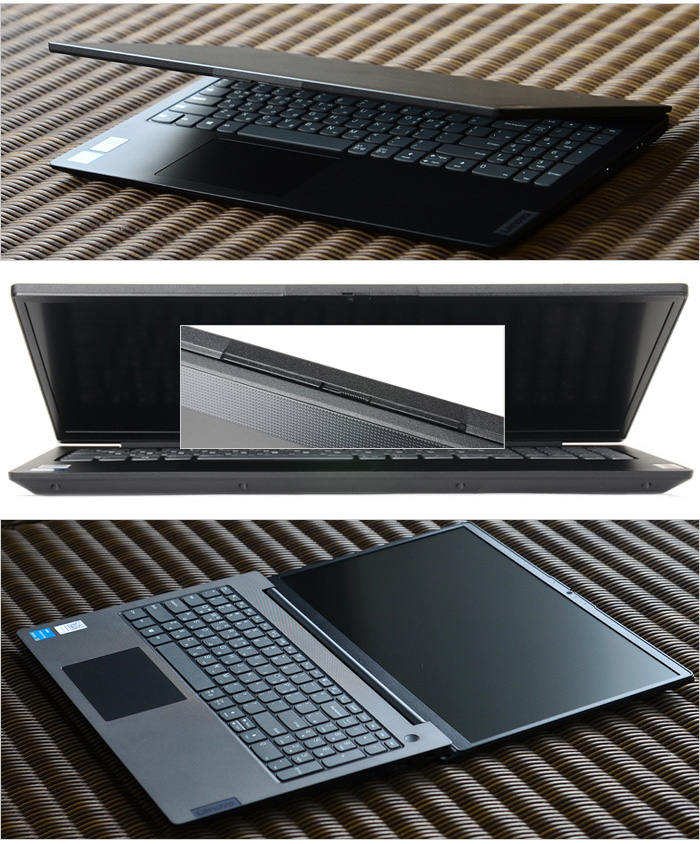 기기의 디자인은 심플함을 추구하는 V시리즈와 같이 군더더기 없는 깔끔한 모습을 보여주고 있다. 씽크패드를 연상시키는 블랙 컬러에 두께가 동일한 풀-플랫 설계로 제품이 상당히 날렵해 보인다. 물론 고급형 모델과 같은 고급스러움은 느껴지지 않지만 오래봐도 질리지 않는 비즈니스 노트북으로는 충분히 만족스러운 디자인이다.