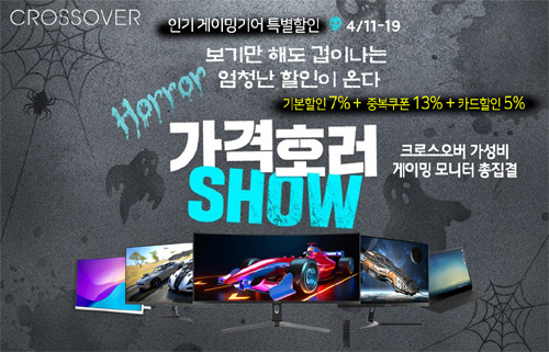 크로스오버는 인기 포터블, 게이밍, 고해상도 및 대화면 모니터들을 대상으로 4월 옥션 지마켓 가격호러쇼 특가전을 펼친다.