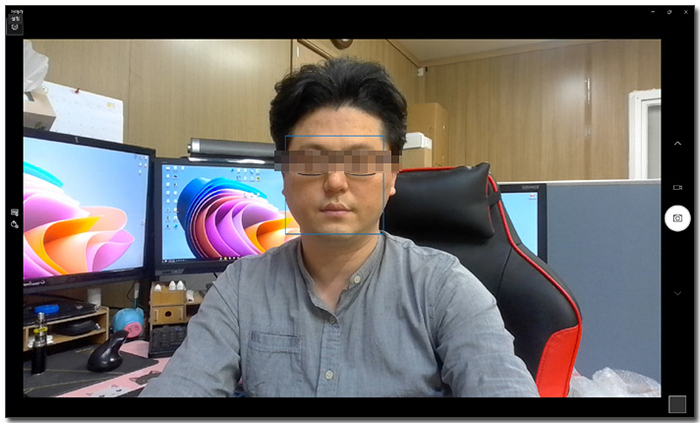 웹캠 화질을 확인하고 있는 모습으로 HD 웹캠을 제공하는 경쟁 노트북과는 디테일에서 확연한 차이를 경험할 수 있었다. 화상회의가 잦은 직장인에게 추천하고 싶은 노트북이다.