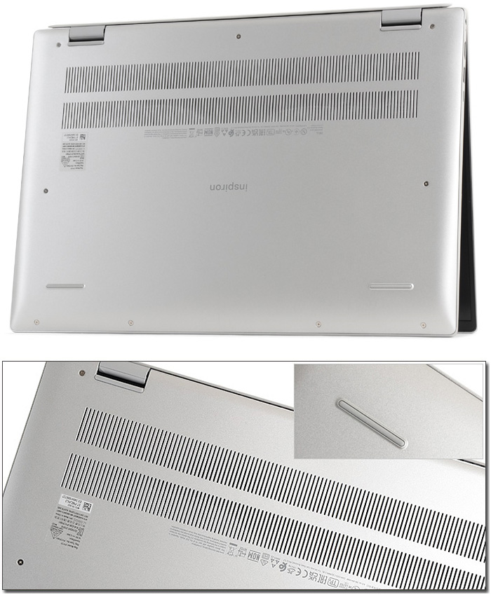 바닥면의 모습으로 상단과 하단에 고무패드가 장착되어 미끄러짐을 방지하며 상단에는 안정성을 높이기 위해 통풍구가 설치된 것을 확인할 수 있다. 또한 하단 양 측면에는 스피커가 설치되어 퀄리티 높은 사운드를 즐길 수 있다.