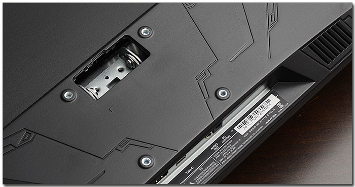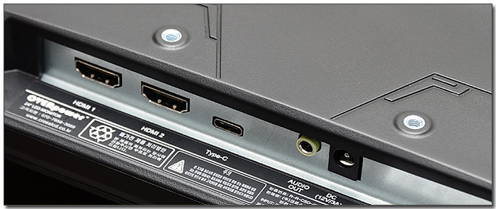 하단 중앙에는 75mm 베사홀이 설치되어 벽에 걸거나 ARM 등에 장착해 사용할 수 있으며 하단에는 2개의 HDMI 단자와 C타입 단자를 지원해 PC와 노트북, 게임콘솔, 스마트폰 등과 손쉽게 연결해 사용할 수 있다.