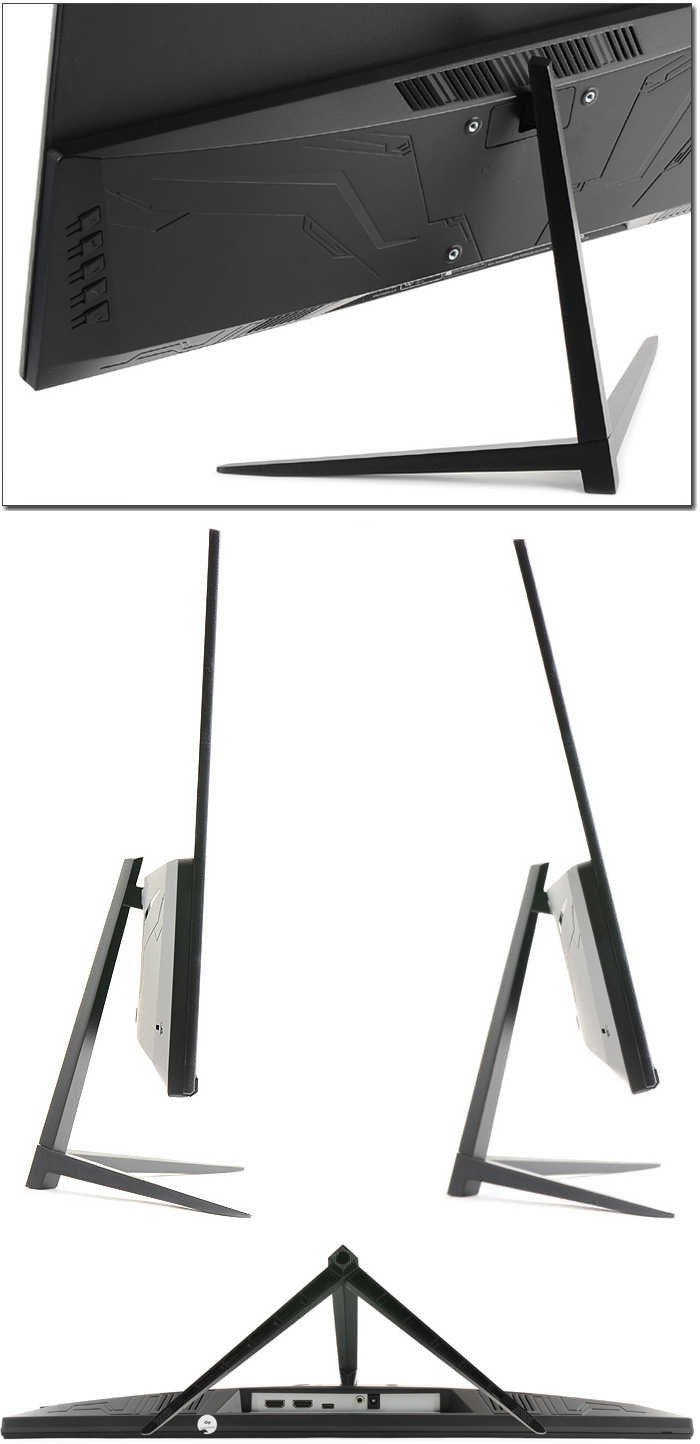 기기의 디자인은 무척 깔끔한 것을 확인할 수 있다. 블랙 컬러를 사용하고 후면 하단부에 패턴을 적용해 세련된 느낌을 주며 일반 모니터와 확연히 비교되는 슬림한 두께로 날렵함을 강조한 것이 인상적이다. 군더더기 없는 깔끔한 디자인을 선호한다면 만족스럽게 사용할 수 있을 것이다.