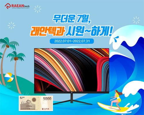 래안텍은 자사 인기 모니터 7종 구매 시 신세계 상품권을 100% 증정하는 ‘무더운 7월, 래안텍과 시원~하게!’ 이벤트를 진행한다고 1일 밝혔다.