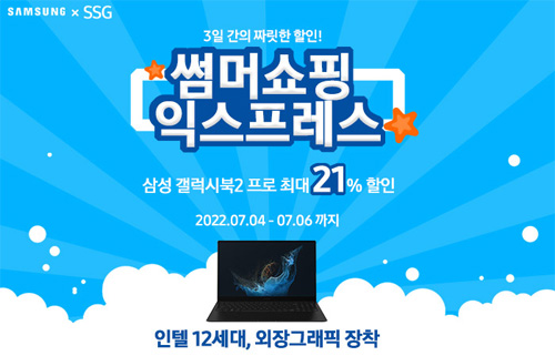 유니씨앤씨는 다가오는 여름휴가를 맞아 최신 탑재, 초슬림 초경량 디자인으로 뛰어난 휴대성을 자랑하는 삼성 갤럭시북2 프로 NT950XEV-G51A 모델을 대상으로 최대 34만원 중복 할인과 푸짐한 사은품이 증정되는 ‘썸머 쇼핑 익스프레스’ 프로모션을 2022년 7월 4일부터 7월 6일까지 SSG을 통하여 단독 진행한다.