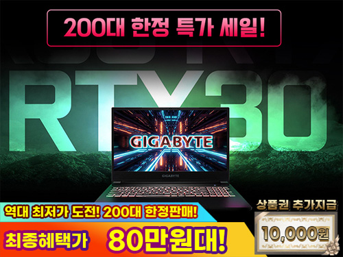 이번 행사는 엔비디아 지포스 RTX 3060 그래픽을 탑재한 기가바이트 G5 KD Gen11 i5 LE 노트북을 하이마트 3만 9천원 할인 쿠폰, 다운로드 쿠폰, 카드 할인 8%를 통해 최대 11만원 할인된 금액인 849,000원에 구매할 수 있다. 200대 한정으로 진행하며, 구매하는 고객에게는 백화점 모바일 상품권 1만원과 노트북 파우치를 추가로 증정한다.
