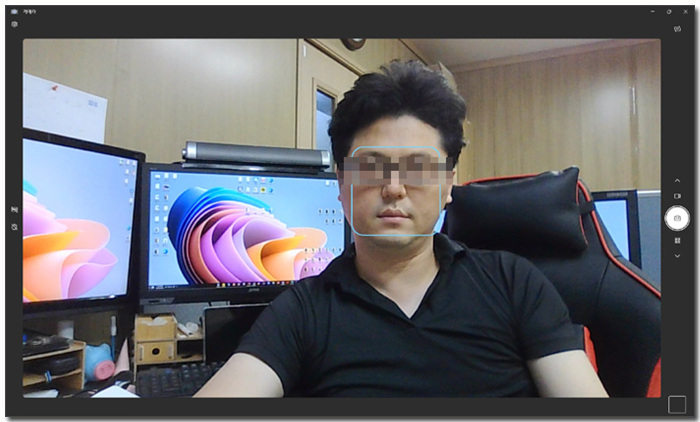HD 웹캠의 화질을 확인하고 있는 모습으로 보급형 노트북과는 확연히 비교되는 뛰어난 화질을 보여주었다. (밝은 곳에서 사용하면 노이즈도 최소화 할 수 있다. 테스트는 비가 많이 오는 어두운 실내에서 진행되었다.) 화상회의나 셀프 촬영용으로 유용하게 활용할 수 있을 것이다.