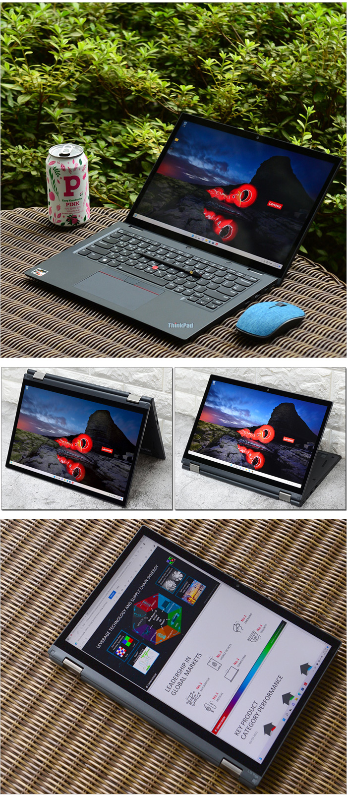 레노버 씽크패드 L13 Yoga Gen3는 비즈니스에 특화된 라이젠 PRO 프로세서를 탑재되어 업무용으로 편하게 사용할 수 있으며 디스플레이가 회전되고 터치 디스플레이와 스타일러스 펜을 제공해 높은 사용성을 제공한다. 씽크패드 X시리즈 와는 가격차가 확연해 부담없는 가격에 다용도로 활용할 수 있는 비즈니스 노트북을 구입하려는 유저들에게 좋은 대안이 되고 있다.