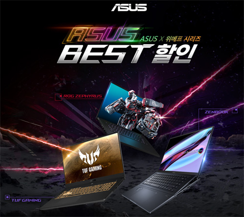 디앤에스아이티는 9월 5일부터 위메프에서 진행하는 'BEST 할인' 행사를 통해 ASUS 노트북할인 행사를 진행한다고 밝혔다. 이번 ‘위메프 BEST 할인’ 에서는 ASUS 브랜드쿠폰 12%(최대 100만원), 카드할인 4%(최대 9만원), 장바구니 쿠폰 5%, (최대 5만원)의 할인 금액으로 제품을 구매 할 수 있다.