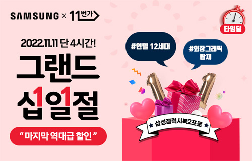 유니씨앤씨는 그랜드십일절을 맞아 최신 인텔 12세대 CPU와 인텔 아크 그래픽 탑재, 초슬림 초경량 디자인으로 뛰어난 휴대성을 자랑하는 삼성 갤럭시북2 프로 NT950XEV-G51A 모델을 대상으로 최대 49만원 파격 할인과 푸짐한 혜택이 증정되는 ‘타임딜’ 프로모션을 2022년 11월 11일 12시부터 단 4시간 동안 11번가를 통하여 단독 진행한다.