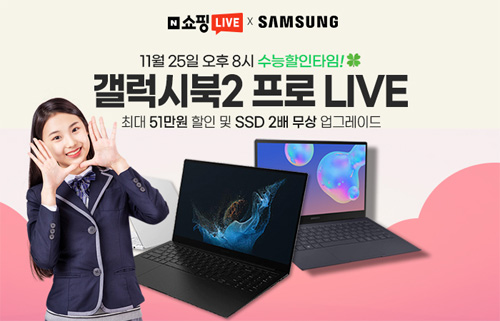 유니씨앤씨는 대학수학능력시험 기념으로 AMOLED 디스플레이와 초슬림 초경량 디자인으로 뛰어난 휴대성을 자랑하는 삼성 갤럭시북2 프로 / 프로360 / 갤럭시북 S 대상으로 최대 51만원 할인 혜택과 푸짐한 사은품이 증정되는 ‘갤럭시북2 프로’ 라이브 방송을 2022년 11월 25일 20시부터 단 1시간 동안 네이버 스마트스토어를 통하여 진행한다.