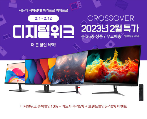 크로스오버는 자사의 인기 게이밍 모니터 36종을 대상으로 위메프 2023년 2월 디지털위크 특가전을 실시한다고 밝혔다.