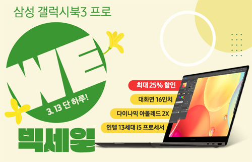 유니씨앤씨는 인텔 13세대 i5 프로세서와 고해상도 WQXGA+ AMOLED 디스플레이를 탑재한 삼성 갤럭시북3 프로 NT960XFT-A51A 대상으로 최대 49만원 중복 할인과 푸짐한 사은품이 증정되는 ‘WE빅세일’ 프로모션을 2023년 3월 13일 단 하루 위메프를 통하여 단독 진행한다.
