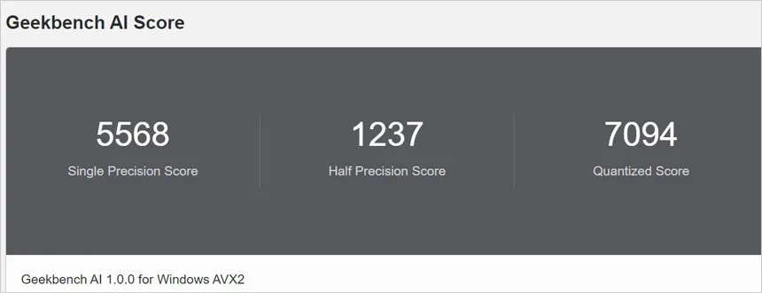 NPU 가 탑재된 AI 프로세서로 긱벤치 AI를 이용해 성능을 테스트 해 보았는데 기존의 모바일 프로세서와는 분명한 차이를 보여주었다. (i9-14900HX 보도 스코어가 훨씬 높다.) 코파일럿은 물론 생성형 AI 프로그램도 부드럽게 실행할 수 있을 것이다.