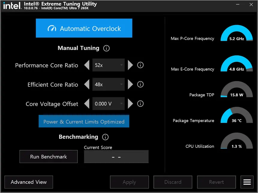 오버클럭 기능도 개선되었다. 인텔코어 울트라 200S 프로세서는 P코어와 E코어의 최상위 터보 주파수를 16.6MHz 단위로 조정할 수 있어 세밀하게 값을 지정해야 하는 전문가들이 편하게 오버클럭을 실행할 수 있으며 기존과 같이 인텔 익스트림 튜닝 유틸리티에서 원클릭 오버클럭을 지원해 초보자 들고 손쉽게 CPU의 성능을 높일 수 있다.