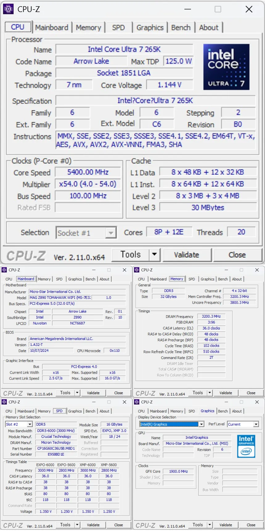 CPU-Z를 이용해 프로세서와 시스템 정보를 확인하고 있는 모습으로 125W TDP를 지원하며 8+12코어에 20스레드로 구성된 것을 확인할 수 있다. (상단에 언급한 것과 같이 하이퍼스레딩을 지원하지 않는다.) 또한 L2캐시가 36MB로 늘어났으며 30MB의 L3 캐시를 지원한다.